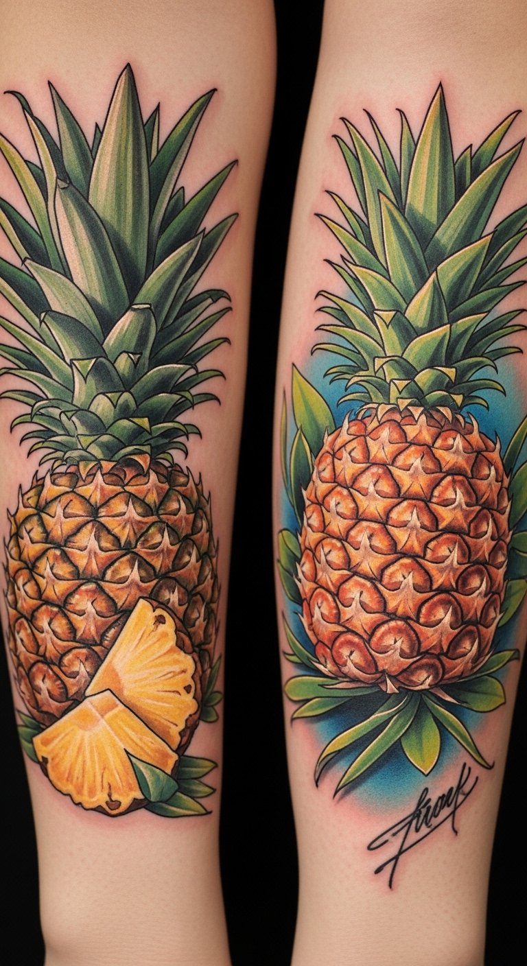 Pineapple tattoos can serve as vibrant symbols of personal growth, embodying the journey of transformation and resilience. Each inked pineapple reflects your self-discovery and inner strength, celebrating life milestones and new beginnings.