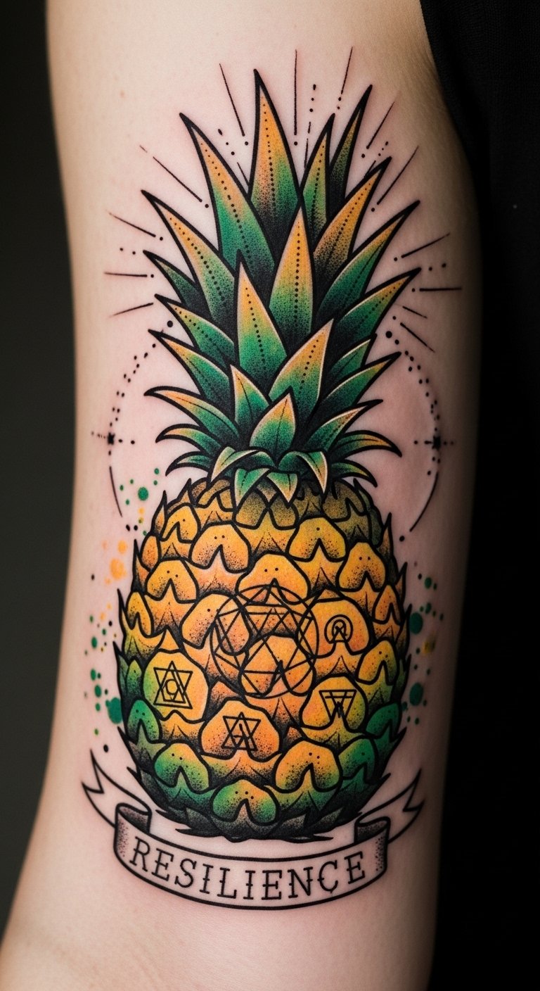 These vibrant creations embody protective symbolism, warding off negativity while celebrating individuality. Each inked pineapple can hold personal significance, reflecting your journey and resilience.
