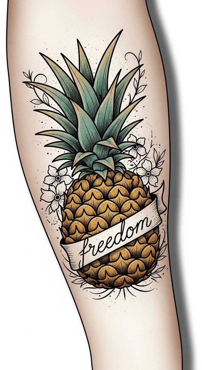 If you’re looking to merge art with motivation, pineapple tattoos adorned with inspirational quotes might be the perfect choice.