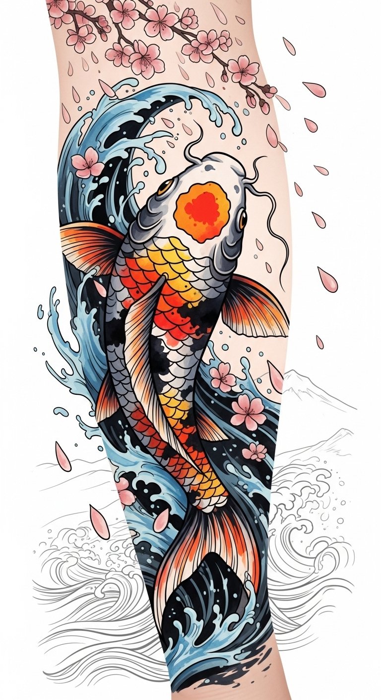 This design symbolizes emotional fluidity, intuition, and the cyclical nature of inner growth, evoking calm, introspection, and freedom; ideal placement follows natural curves of the body so the art appears to move as you do, reinforcing the sense of connection to the sea and self.
