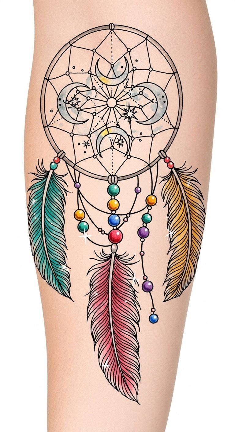 As you embrace your unique journey, consider a dreamcatcher tattoo to embody freedom, hope, and the pursuit of your deepest aspirations. This design emphasizes protection and clarity—feathers for freedom and movement, beads for captured blessings, and celestial motifs for guidance; it evokes calm, resilience, and aspiration.