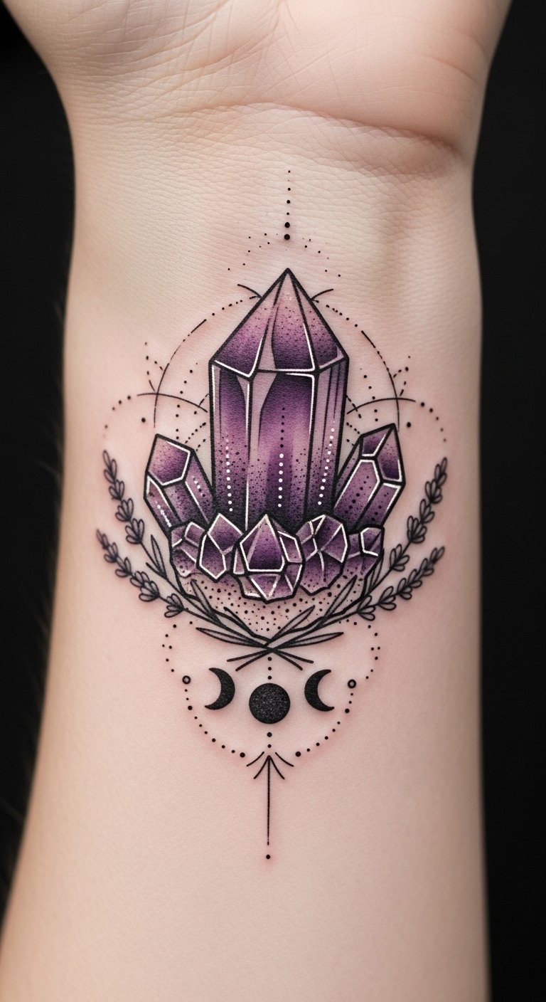 When you choose an amethyst tattoo, you embrace the amethyst crystal’s significance—symbolizing peace and balance. Explore the healing properties of this crystal through intricate designs, allowing your tattoo to become a personal emblem of tranquility and spiritual freedom.