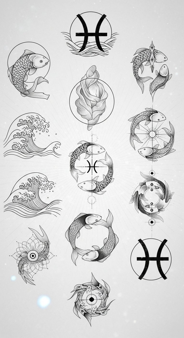 When you think of the Pisces symbol, the image of two fish swimming in harmony often comes to mind, capturing the essence of balance and duality. This harmonious design embodies the fluidity of emotions and connections.