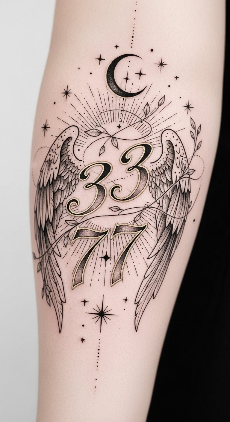 Imagine intricate designs featuring celestial elements, intertwining the numbers with symbols of guidance and enlightenment. These tattoos can serve as constant reminders of the freedom and spiritual guidance you seek in life’s unfolding journey.