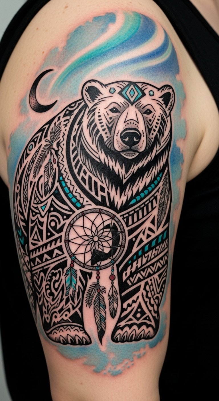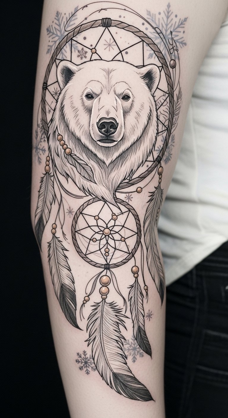 While dreaming of a design that marries cultural symbolism and natural beauty, the combination of a dreamcatcher and a polar bear emerges as a striking choice.