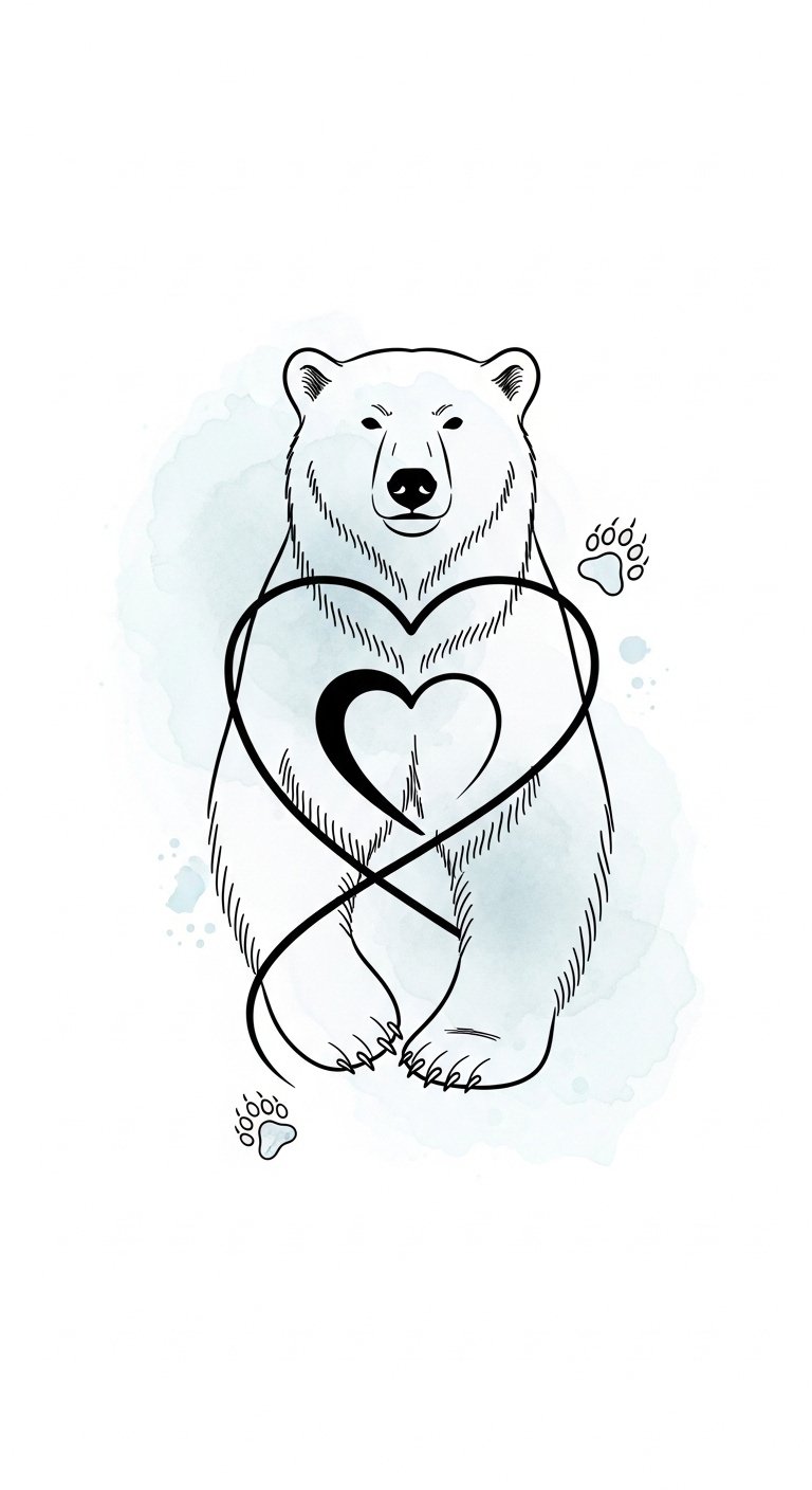 The polar bear with a heart symbol intertwines strength and love, creating a powerful tattoo that speaks to the bond between nature and emotion.