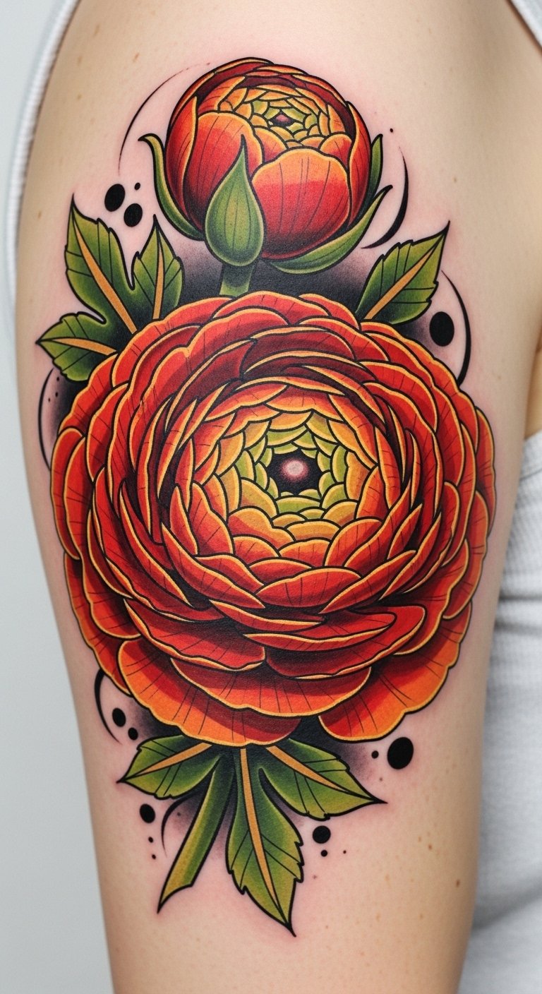 Neo-Traditional Ranunculus Tattoo Design