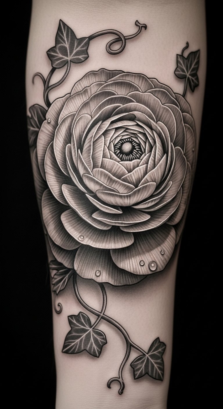 Monochrome Ranunculus Tattoo