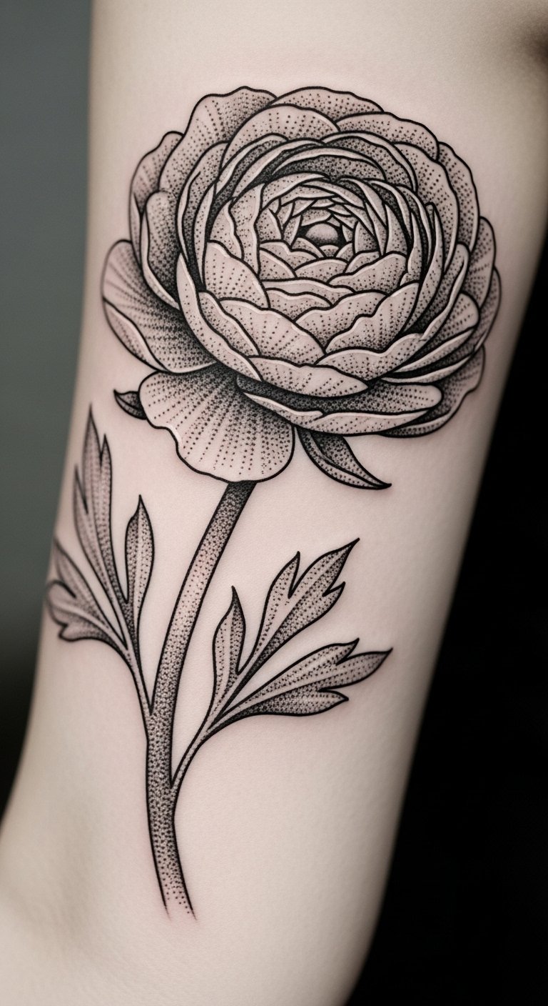 Dotwork Shading Ranunculus Tattoo