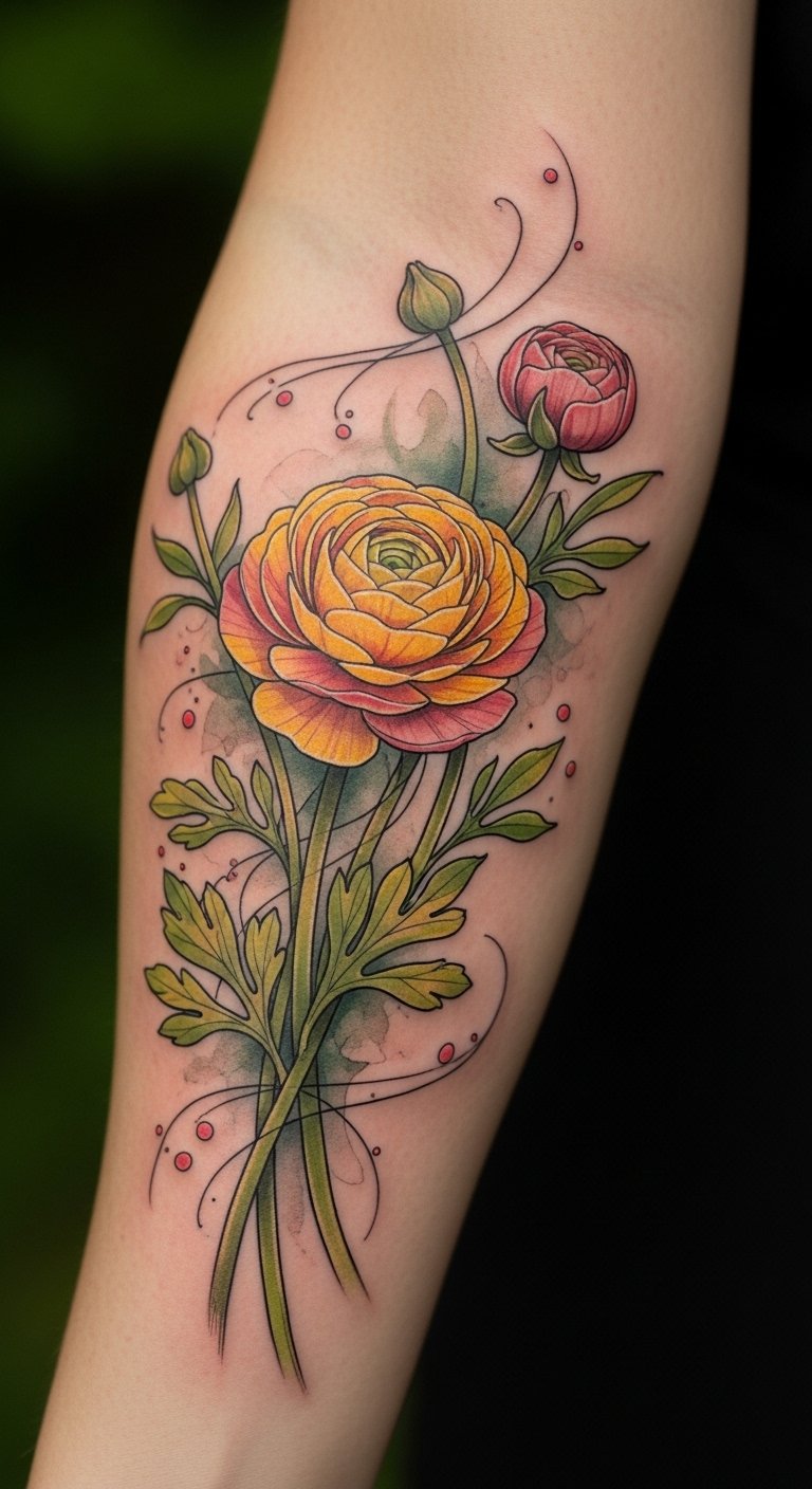 When you choose a ranunculus design for your forearm, you’re not just getting a tattoo; you’re embracing a piece of art that speaks to your identity.