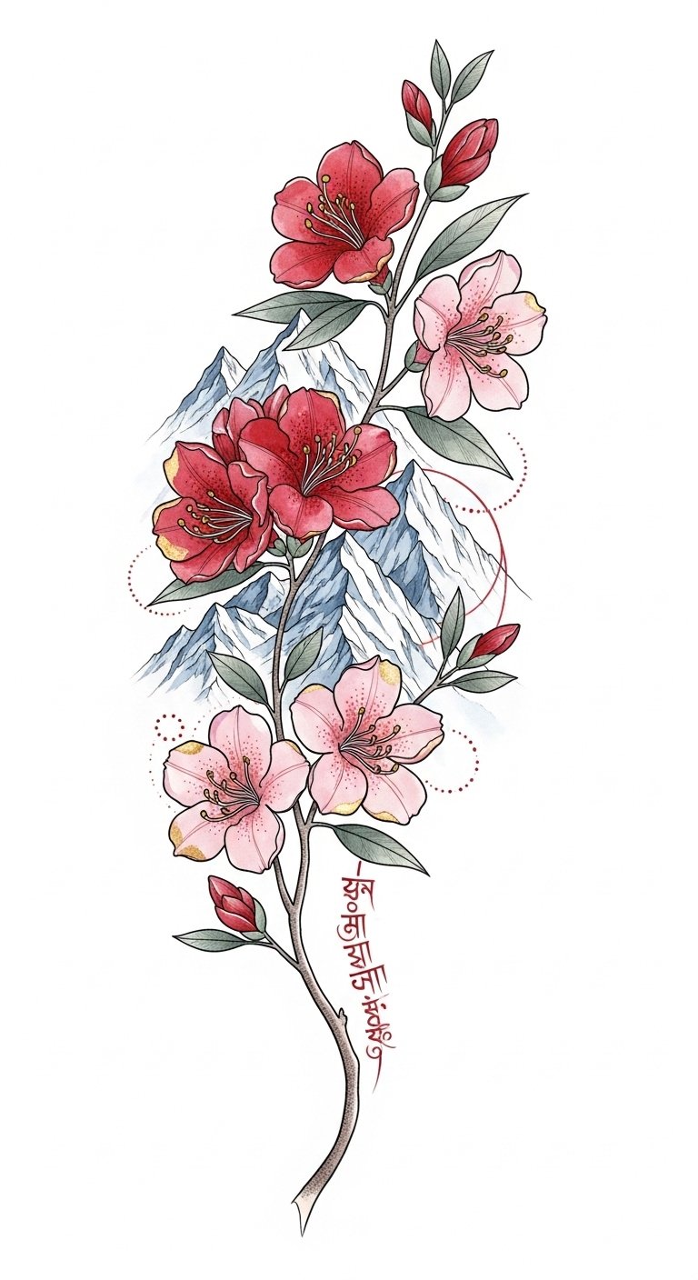 Rooted in Himalayan traditions, these tattoos celebrate rhododendron folklore and its floral heritage. They embody nature’s beauty and spiritual significance, reflecting cultural symbolism that resonates with freedom-loving souls.