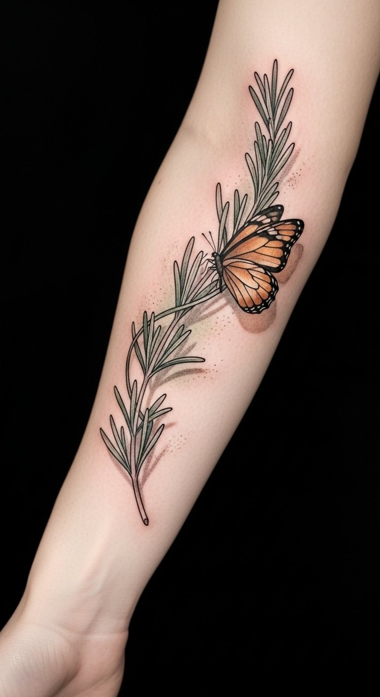 Incorporating a butterfly into your rosemary tattoo can elevate the design, adding layers of meaning and beauty.