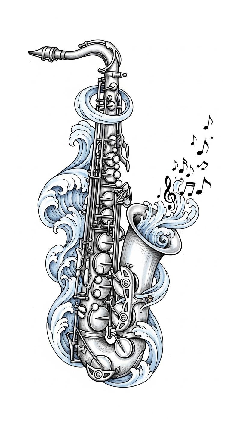 This combination beautifully encapsulates saxophone symbolism and the treble clef significance, representing creativity and the rhythm of life.