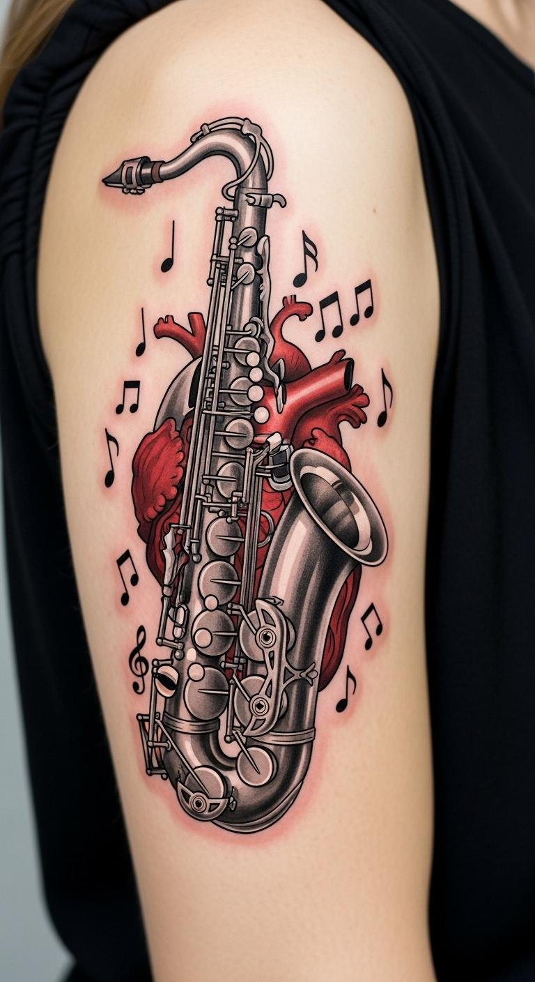 A realistic saxophone tattoo not only celebrates music but also connects you to your artistic soul, inviting admiration and conversation.
