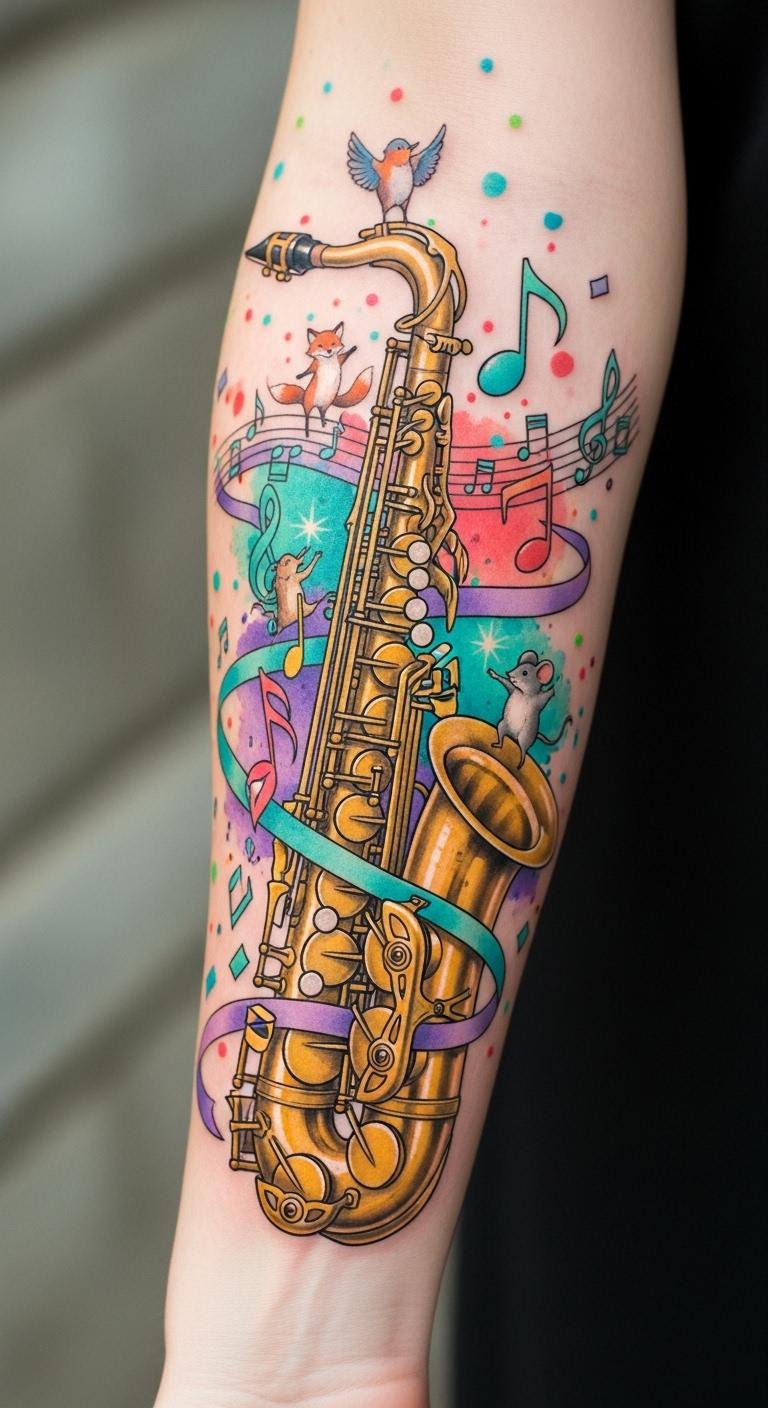 What if you could wear a piece of musical whimsy on your skin? Whimsical saxophone tattoos bring playful elements to life, transforming your love for music into vibrant art.