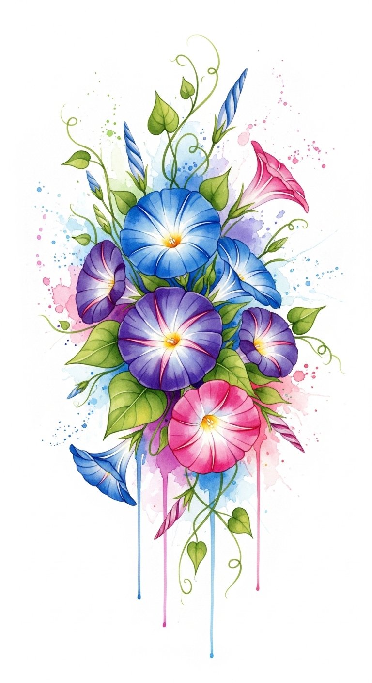 Vibrant Watercolor Morning Glory Bouquet