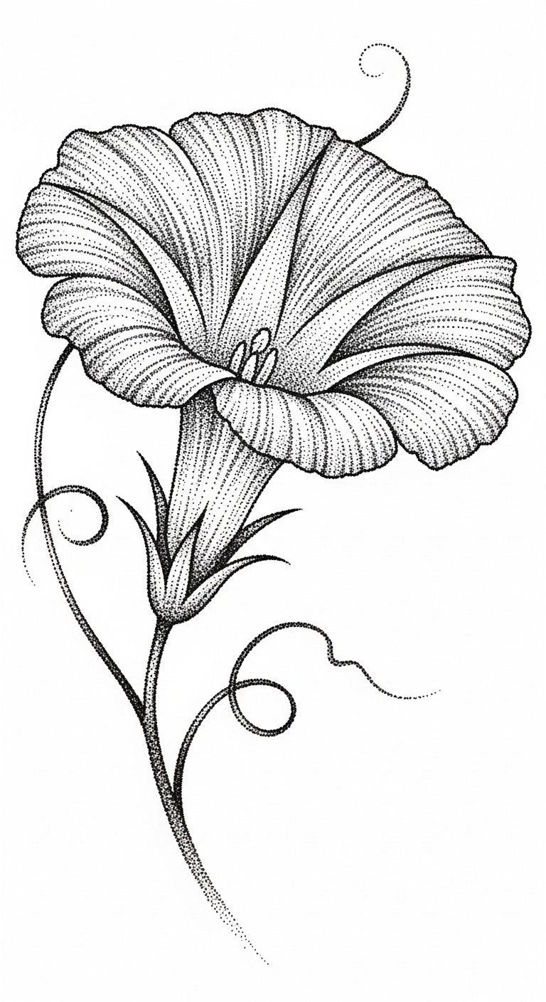 Dotwork Morning Glory With Intricate Texture