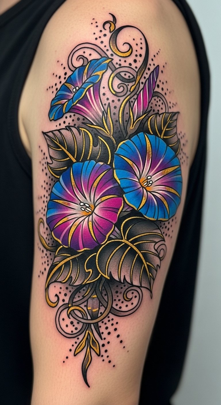 Neo-Traditional Morning Glory With Bold Colors