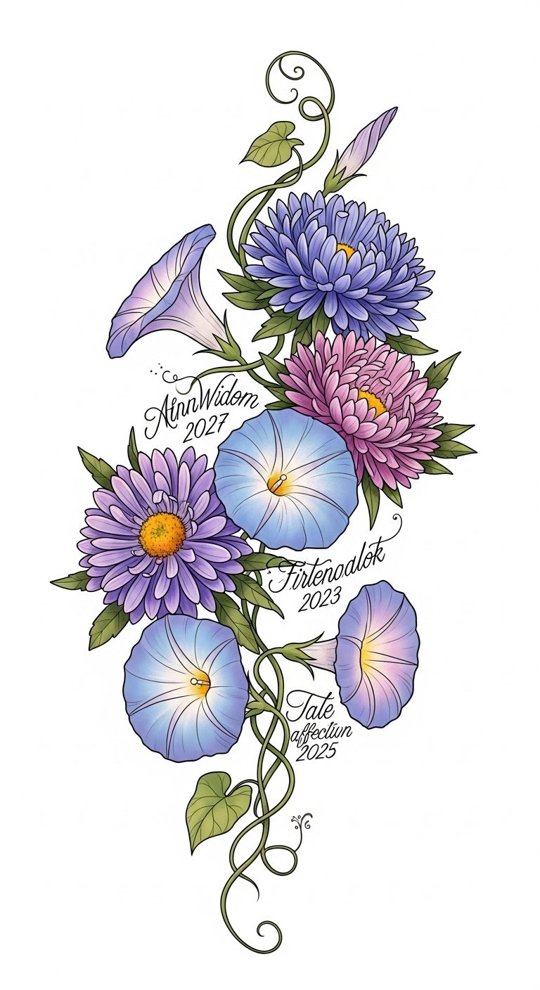 Aster and Morning Glory Tattoo With Dates