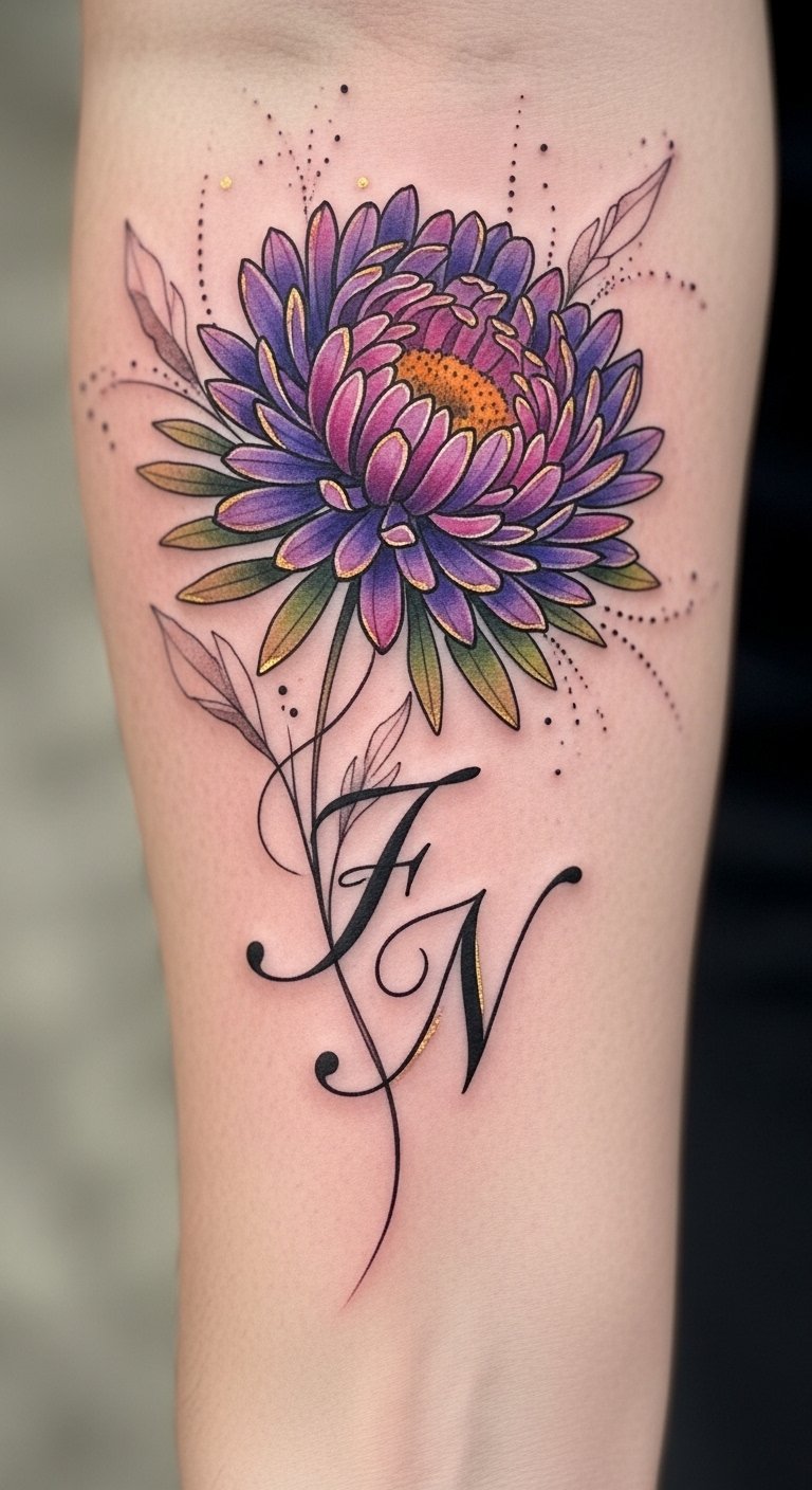 Personalized Aster Tattoo With Initials