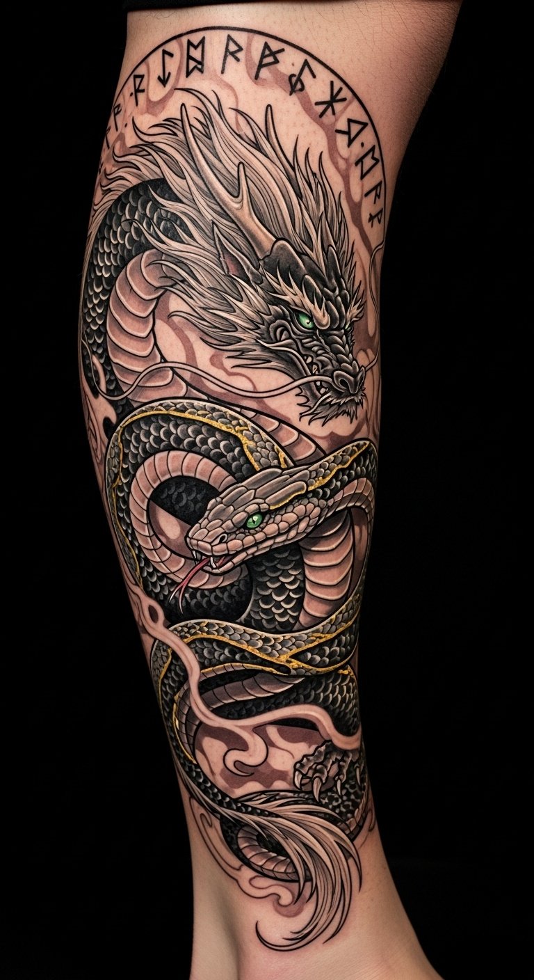Adorning your shin with these creatures elevates your style, igniting a fierce connection to ancient legends and the freedom to embrace your own unique journey.