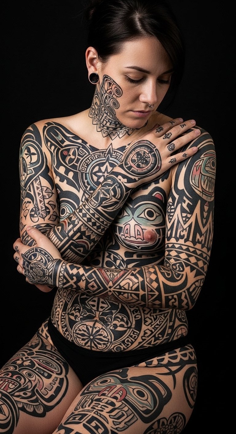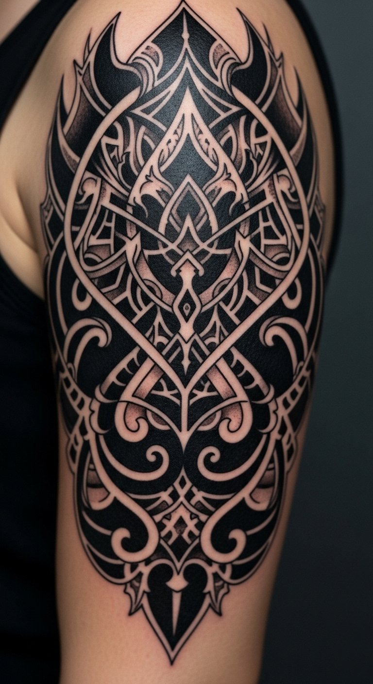 Ideal placements follow natural contours—along the spine for vertical emphasis, wrapping the forearm for movement, or centered on the chest as a protective emblem—allowing the symmetry to interact with body topology and personal narrative.