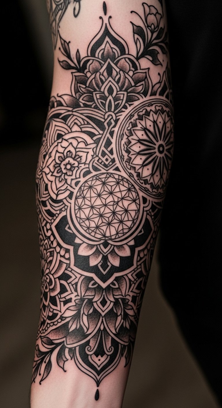 These intricate blackwork patterns weave together the profound mandala symbolism, representing balance and unity. Each line and curve invites you to explore your inner self, celebrating freedom in artistry.