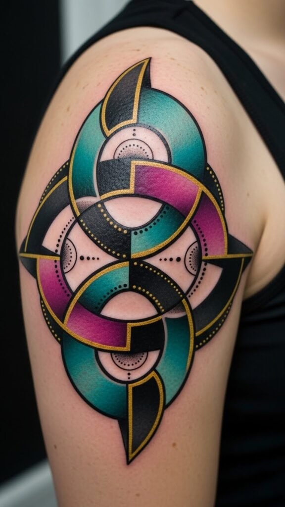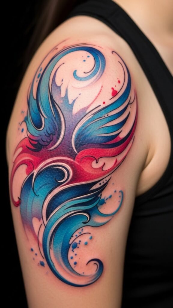 Tattoos can tell stories that reflect personal journeys, but they can also embrace the beauty of abstract art. Imagine bold lines intertwining with vibrant colors, creating a dance of abstract shapes across your shoulder.
