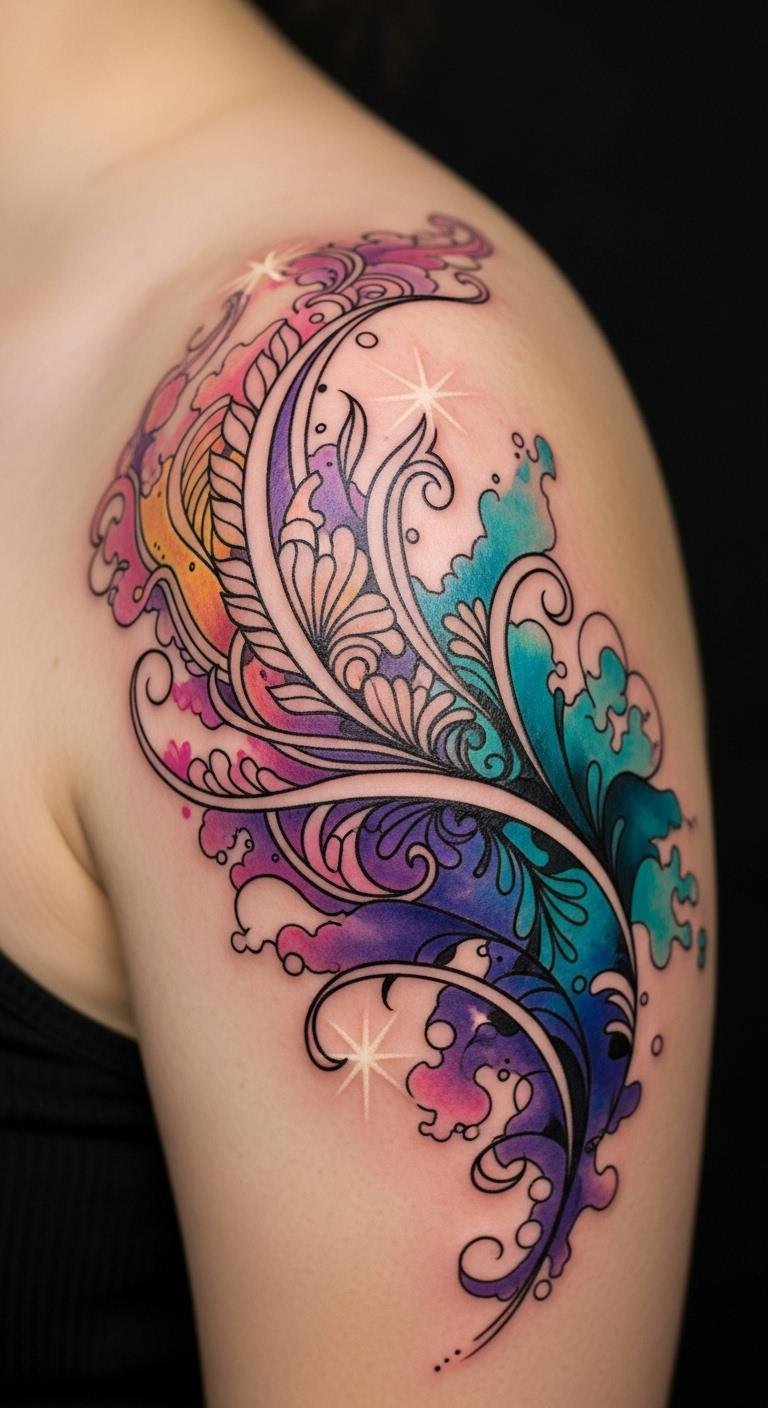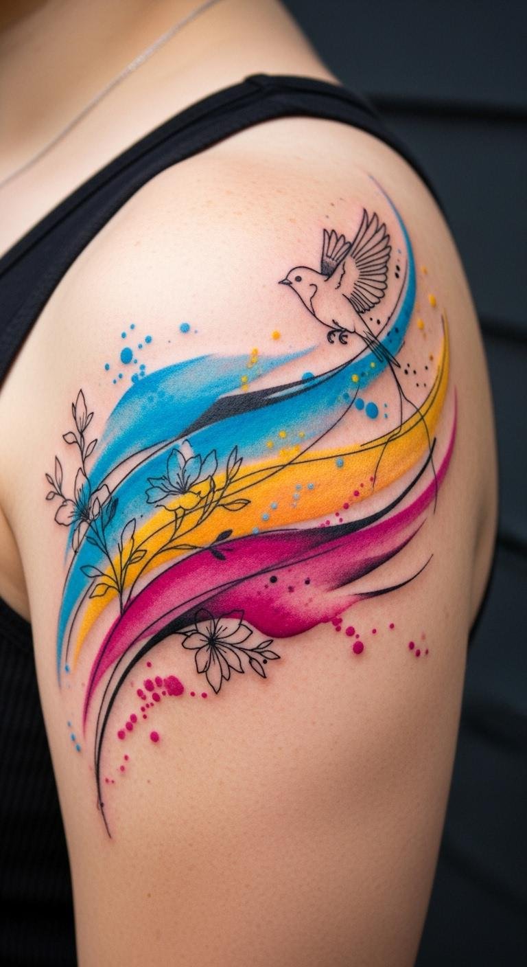 A splash of color can transform your shoulder into a canvas of artistic expression with watercolor tattoos.