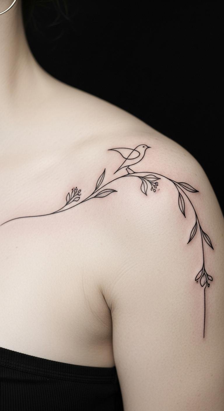 These delicate tattoos feature minimalist motifs, focusing on clean lines that flow effortlessly along your shoulder. Each stroke tells a story, embodying your unique spirit.