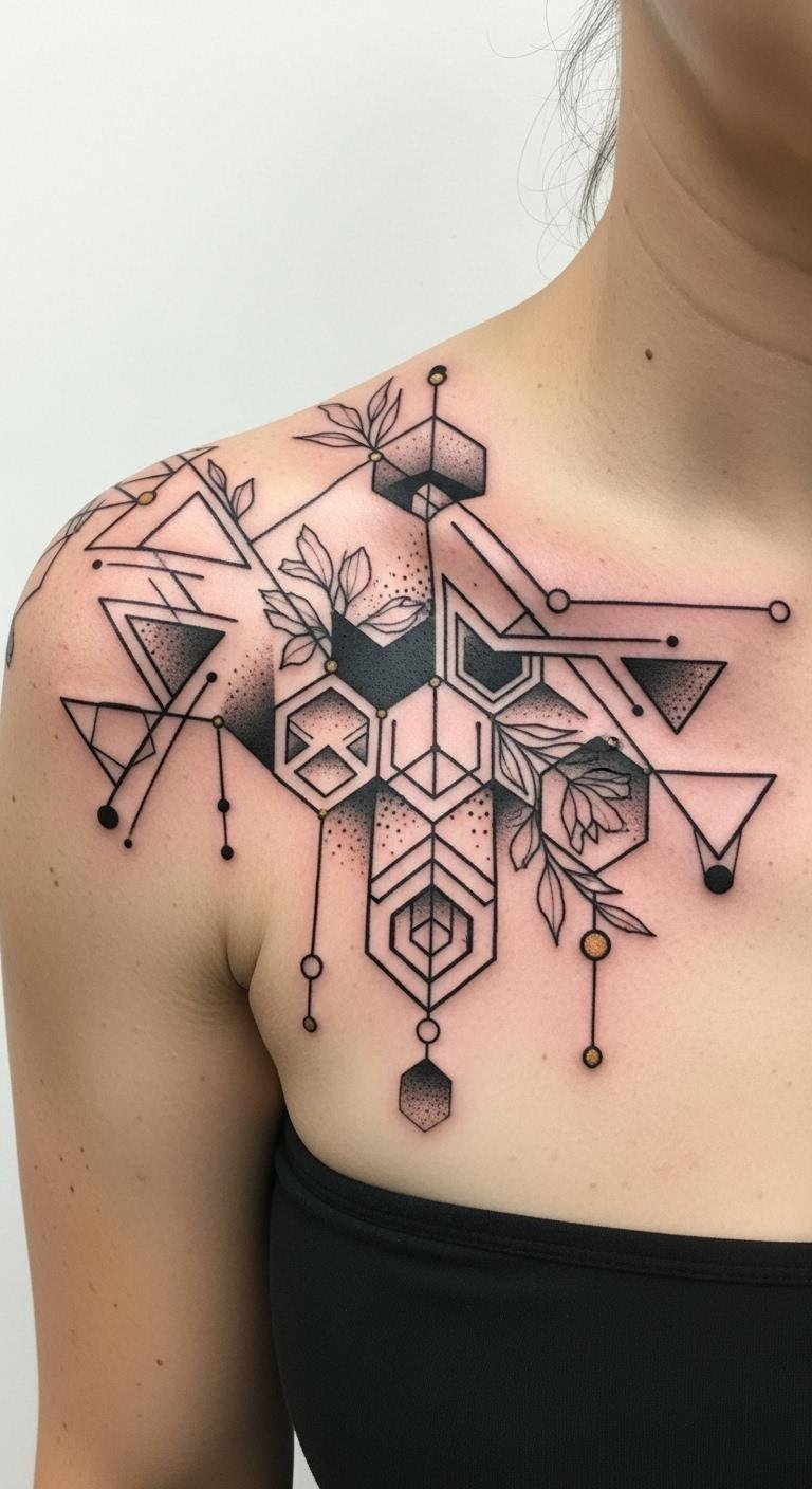 Geometric shapes have become an enchanting choice for women seeking modern and stylish shoulder tattoos that balance elegance with contemporary flair.