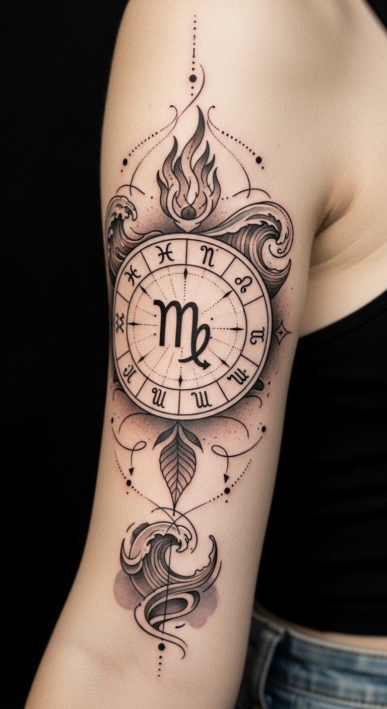 Consider zodiac elements and constellations as you express your individuality. These tattoos represent your unique zodiac personality, forging connections with zodiac compatibility while celebrating the rich history and artistry behind them.