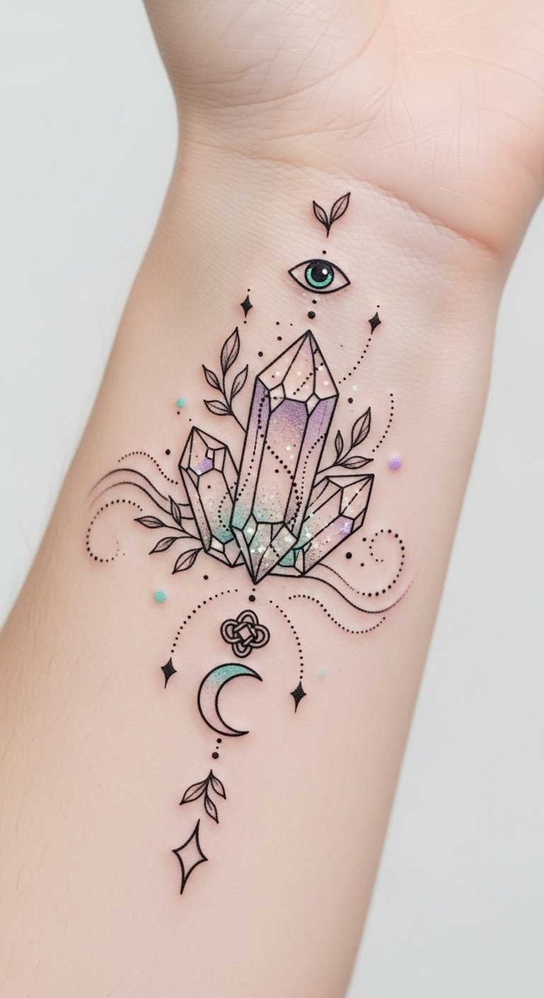 Imagine a delicate tattoo of healing crystals, shimmering with vibrant energy, or protective charms entwined with your spirit.
