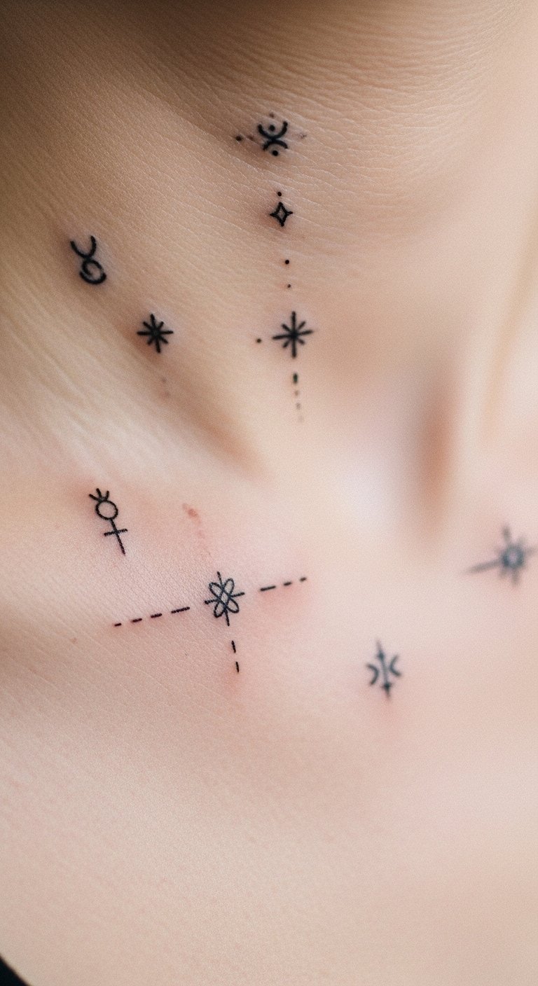 These delicate designs, like tiny galaxy tattoos and intricate cosmic symbol designs, allow you to express your connection to the universe. With single needle techniques, each star and planet becomes a unique representation of your inner world, offering endless possibilities for personal expression.