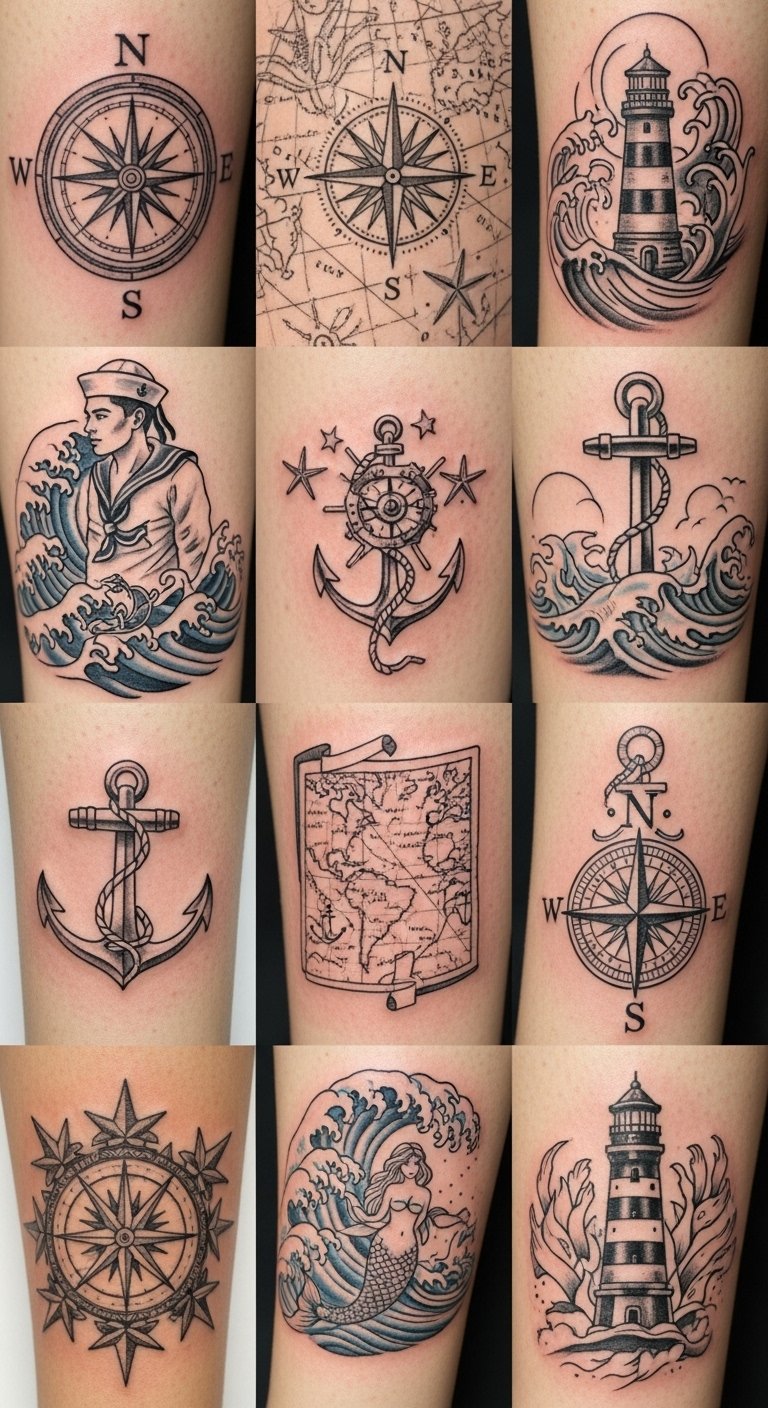 Sailor tattoos, mermaid designs, and lighthouse imagery evoke freedom, while nautical stars and vintage maps guide your journey. Embrace maritime symbols and sea creatures as you chart your unique course.
