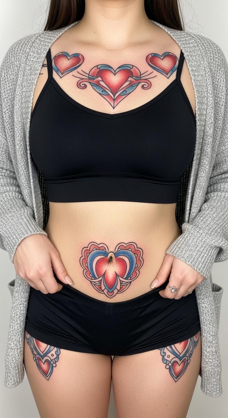 Hip and Chest Heart Tattoos: Feminine Expressions