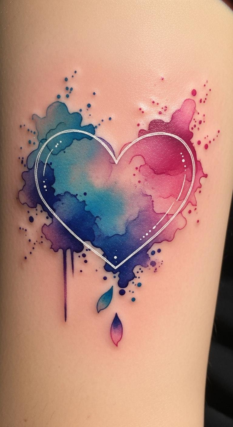 If you’re looking to combine emotion with artistic expression, watercolor heart tattoos might just be the perfect choice for you. These stunning designs utilize watercolor techniques, creating a soft, dreamy effect that captures your feelings.