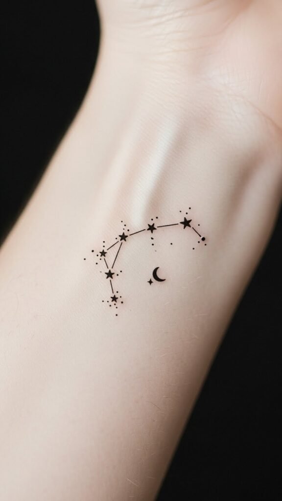While the stars may seem distant, tiny zodiac constellation tattoos bring the cosmos closer to your skin, allowing you to carry a piece of the universe with you. Each design whispers zodiac symbolism and embodies constellation meanings, connecting you to your astrological roots.