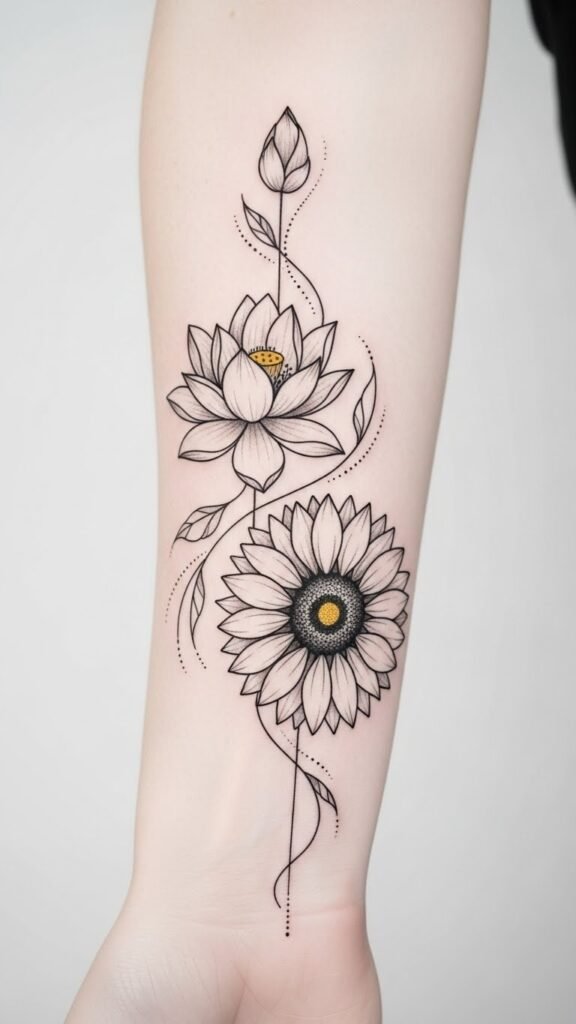 Emerging from the serene symbolism of the lotus flower, sunflowers burst forth as vibrant emblems of happiness and positivity.