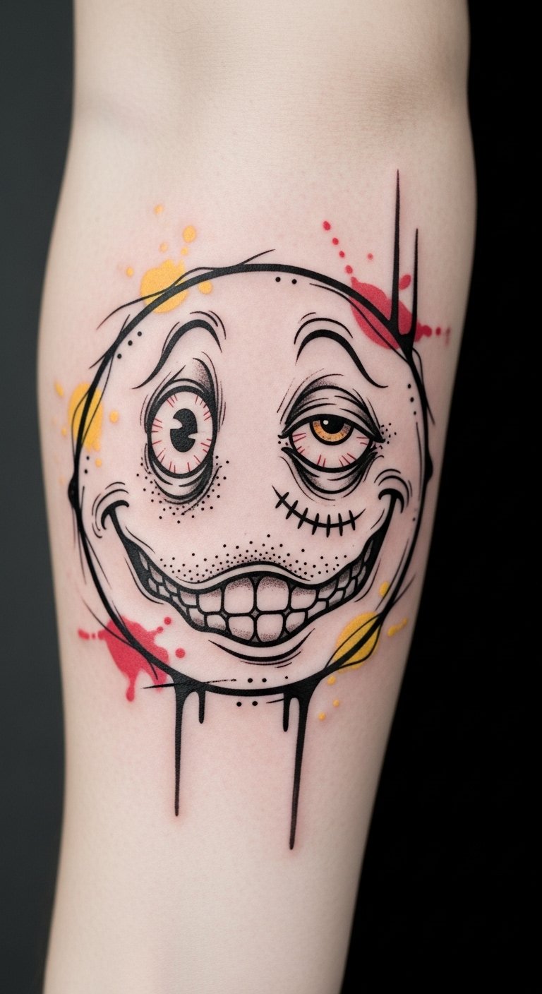 New School Smiley Tattoos With Bold Features