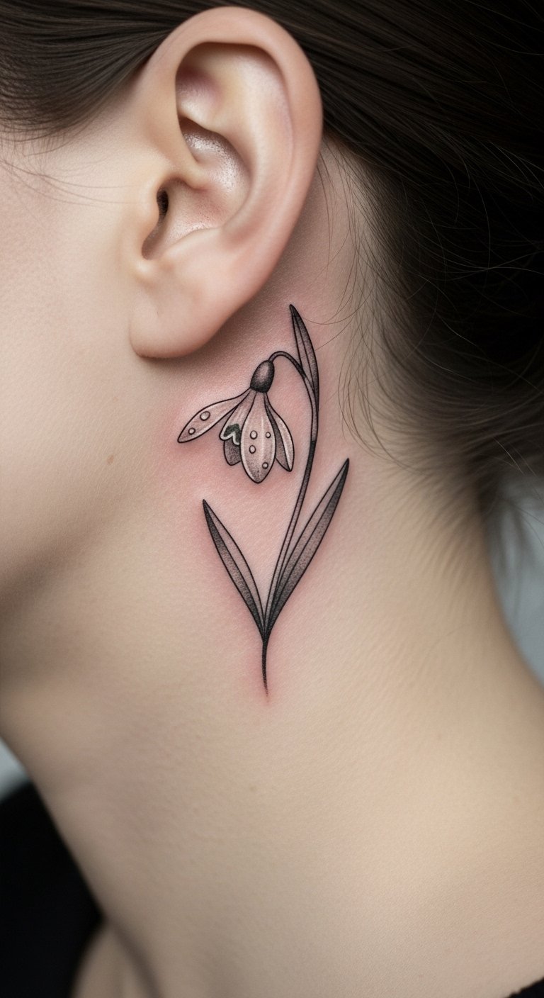 Discreet Snowdrop Tattoos Behind the Ear