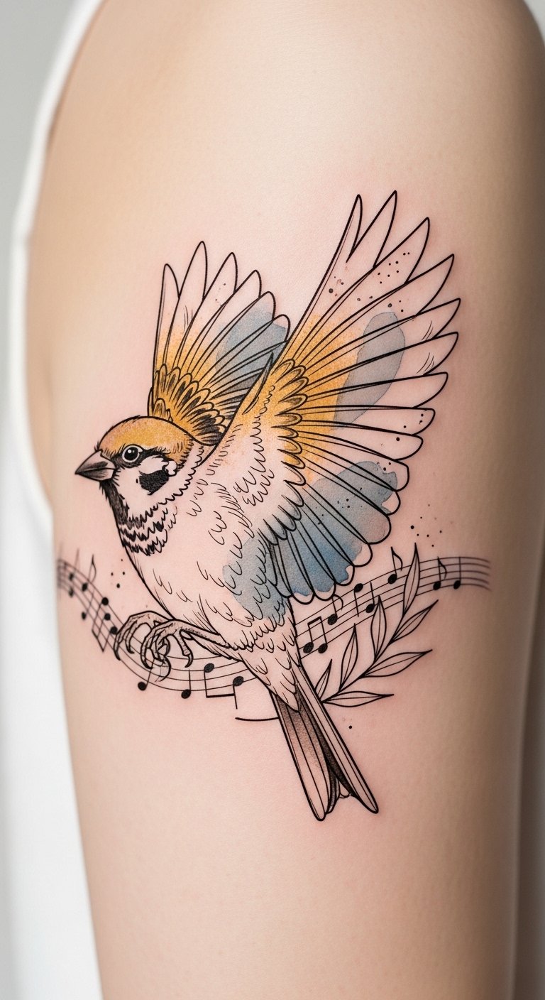 Think deeply about sparrow tattoo placement—it shapes the meaning impact and connects your spirit to the world around you. The design’s symbolism combines the sparrow’s association with freedom and resilience with the motion lines and watercolor accents to evoke movement, hope, and personal journey; placed on the wrist or ankle it feels intimate and liberated, on the chest or back it becomes a statement of inner strength and lasting resolve.