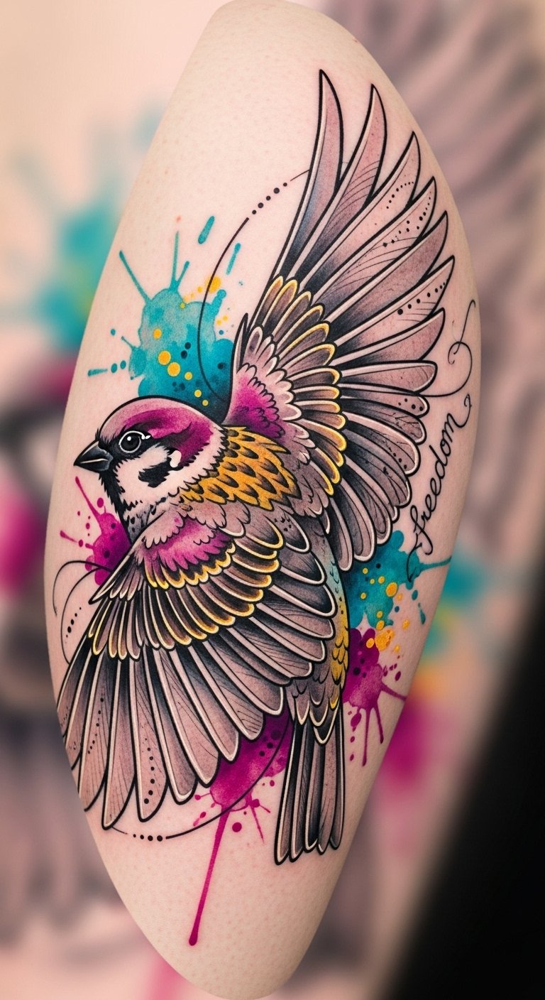 Colorful Sparrow Tattoos: Vibrant Expressions of Freedom