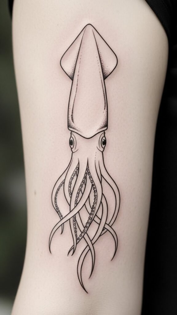 Elegant Minimalist Squid Tattoo