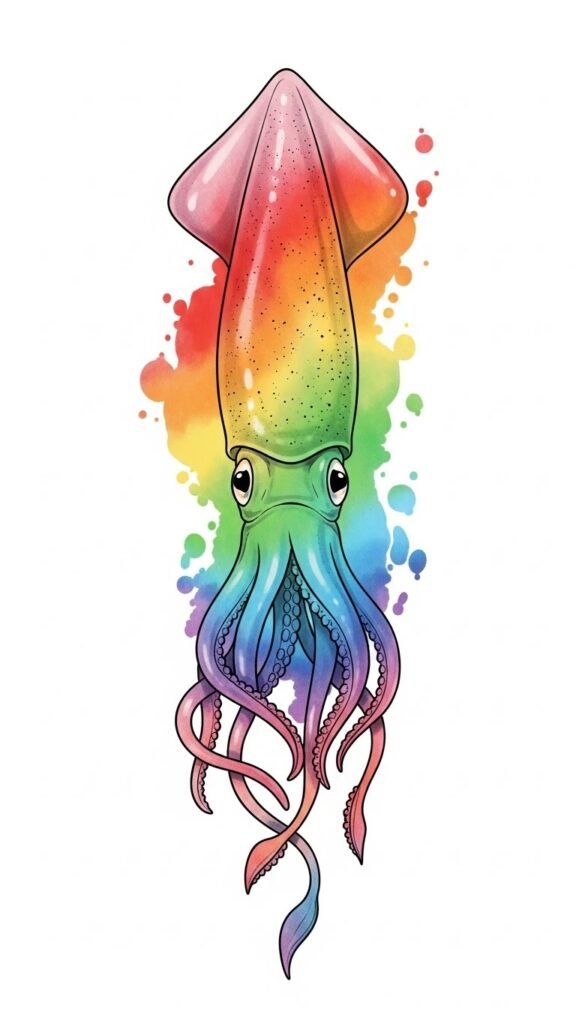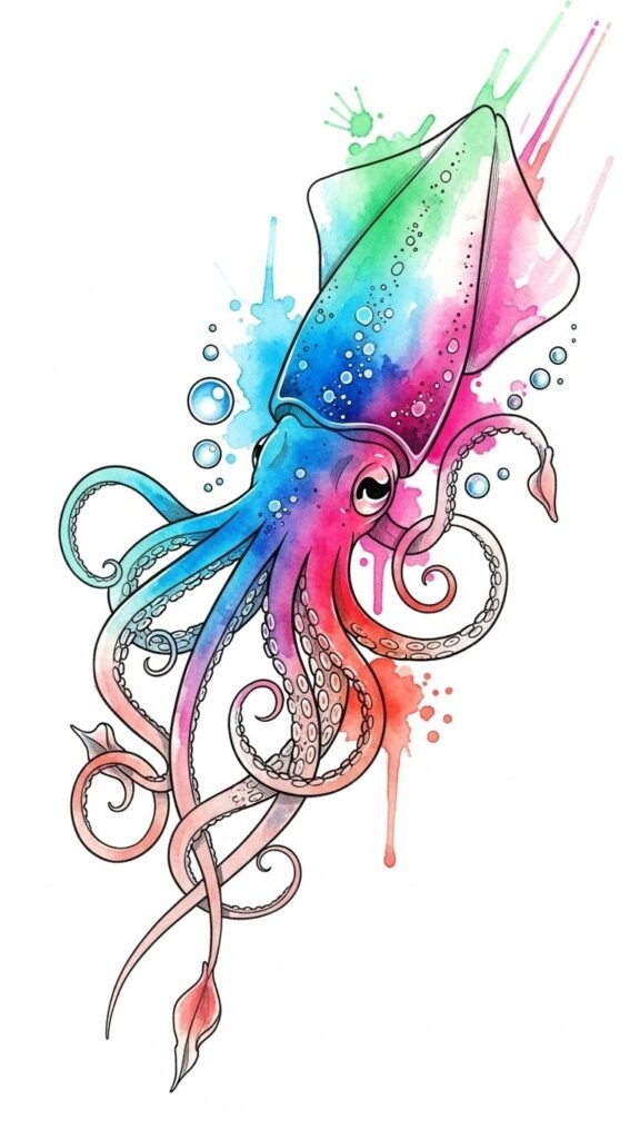 Vibrant Watercolor Squid Design