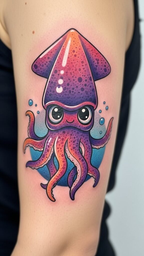 Cute Cartoonish Squid Tattoo