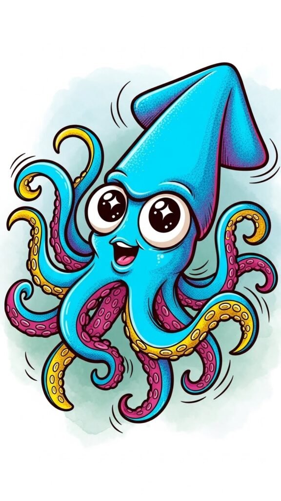 There’s something undeniably enchanting about a playful squid with cartoon eyes, inviting you to plunge into a world of whimsy and creativity.