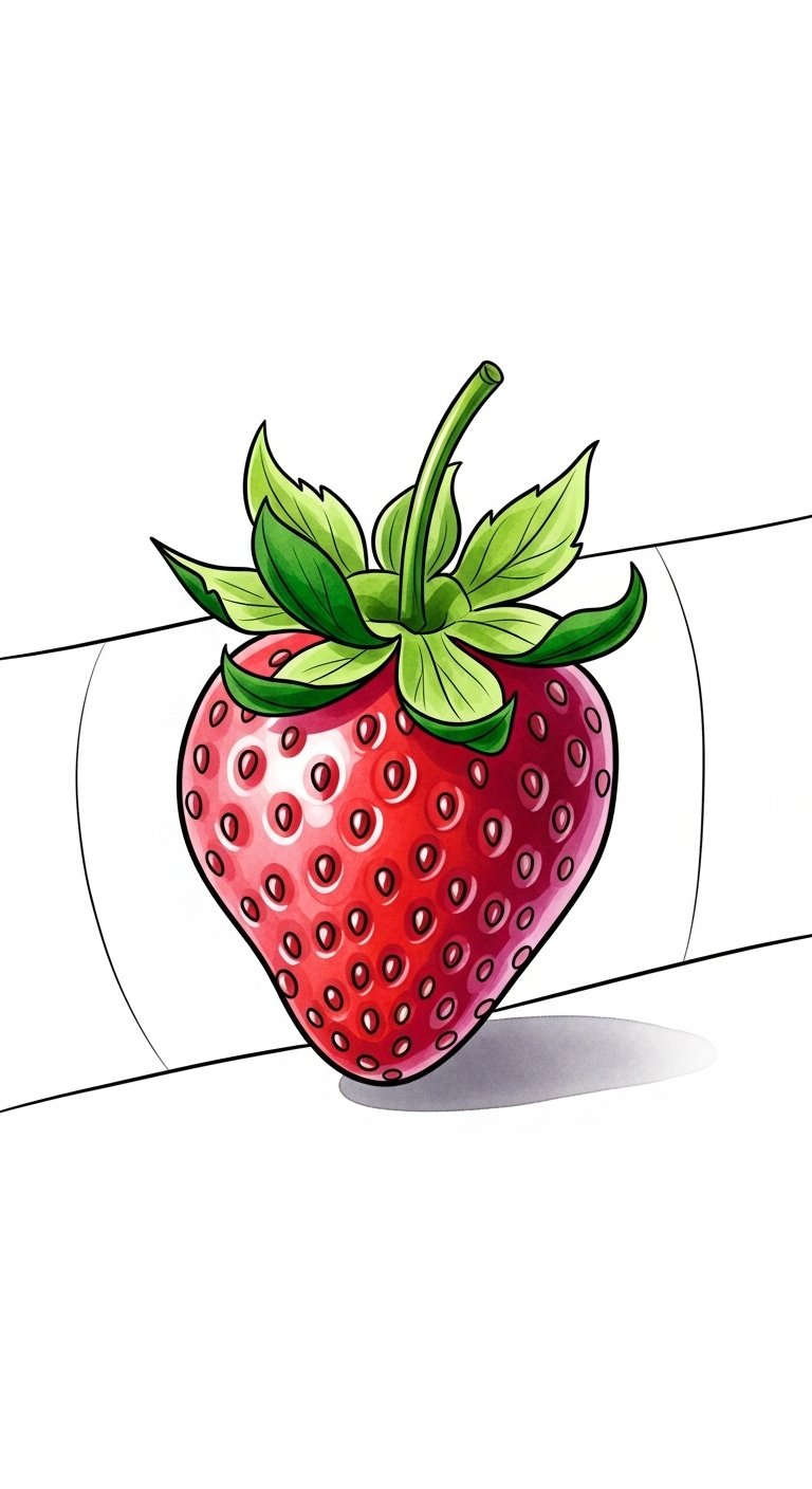 Symbolically, the strawberry evokes sweetness, nostalgia, and fleeting summer joy; emotionally it reads as lighthearted, sensual, and whimsical.