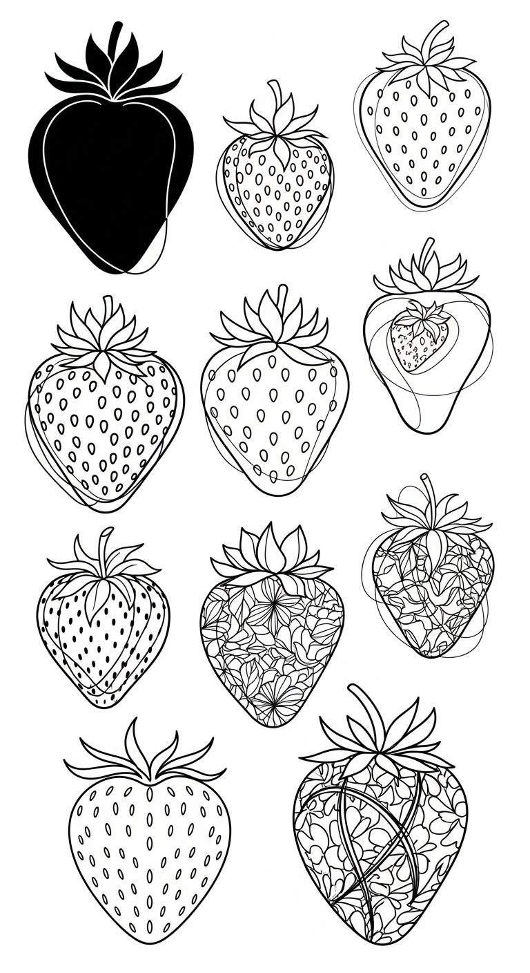 These simple strawberry sketches capture the essence of nature with clean lines and subtle curves. Embracing minimalist strawberry symbolism, they reflect freedom and authenticity, making a bold statement without overwhelming complexity. A perfect choice for anyone seeking elegance in simplicity!