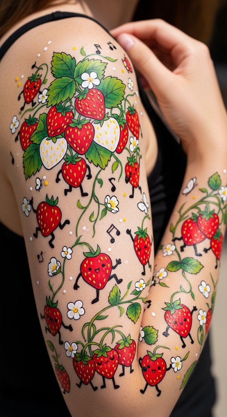 If you’re looking to infuse your tattoo collection with a touch of whimsy, cartoonish strawberry art might just be the perfect fit.